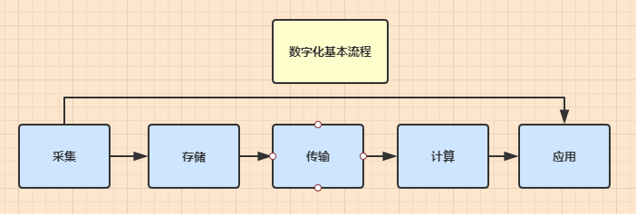 數(shù)字化包括數(shù)據(jù)的采集、傳輸、存儲、計算和應用,是指將各類復雜多變的信息轉(zhuǎn)變?yōu)榭梢远攘康臄?shù)據(jù),并加以處理的過程。