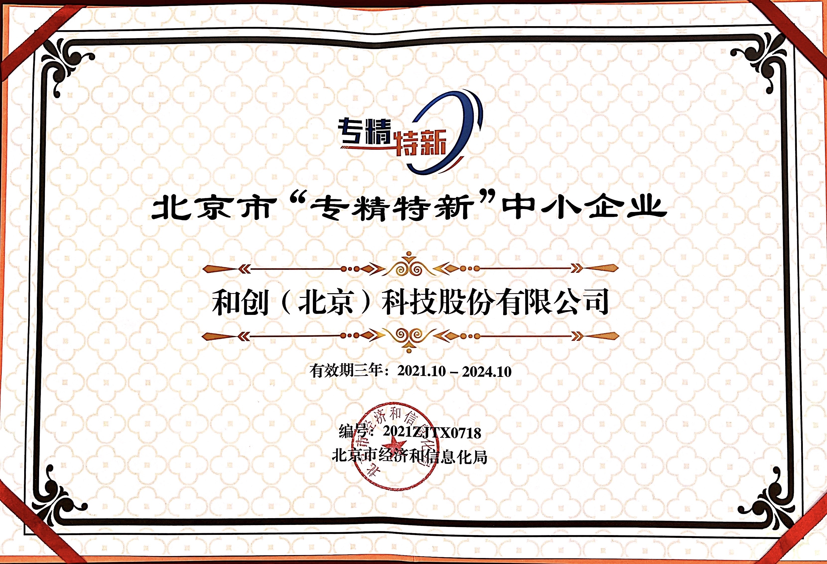 2021年10月29日,北京市經(jīng)濟和信息化局將北京市2021年度第六批擬認定“專精特新”中小企業(yè)名單予以公示,和創(chuàng)(北京)科技股份有限公司(以下簡稱“公司”)榮登榜單,此次公示期為10月29日至11月4日,目前已通過公示期。