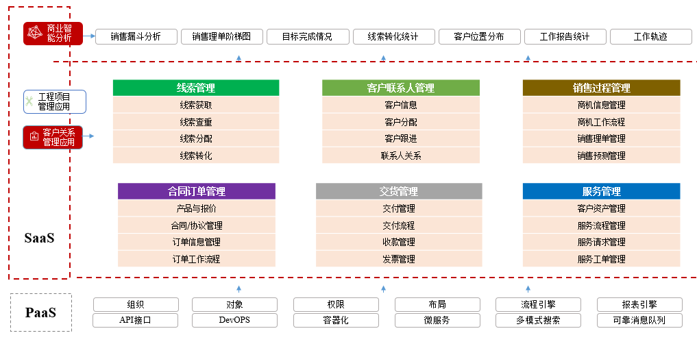 紅圈 CRM+是一款集合了工程項(xiàng)目管理功能和客戶關(guān)系管理功能的 SaaS 產(chǎn)品,以自有底層 PaaS 平臺(tái)為依托,以業(yè)務(wù)實(shí)踐經(jīng)驗(yàn)為指導(dǎo)而構(gòu)建。產(chǎn)品以助力企業(yè)級(jí)客戶提效率、降風(fēng)險(xiǎn)、控成本、管過程、增利潤為核心價(jià)值,能夠?qū)崿F(xiàn)在工程項(xiàng)目管理和客戶關(guān)系管理領(lǐng)域不同功能模塊的靈活配置,滿足客戶的個(gè)性化需求。