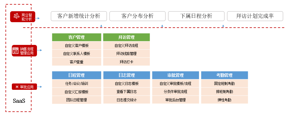 紅圈通是一款主要針對(duì)于通用行業(yè)的客戶管理與銷售協(xié)同管理 SaaS 產(chǎn)品,集合了客戶管理、拜訪管理、考勤、審批、日志、日程、數(shù)據(jù)分析等功能,滿足企業(yè)銷售自動(dòng)化和辦公自動(dòng)化的需求。