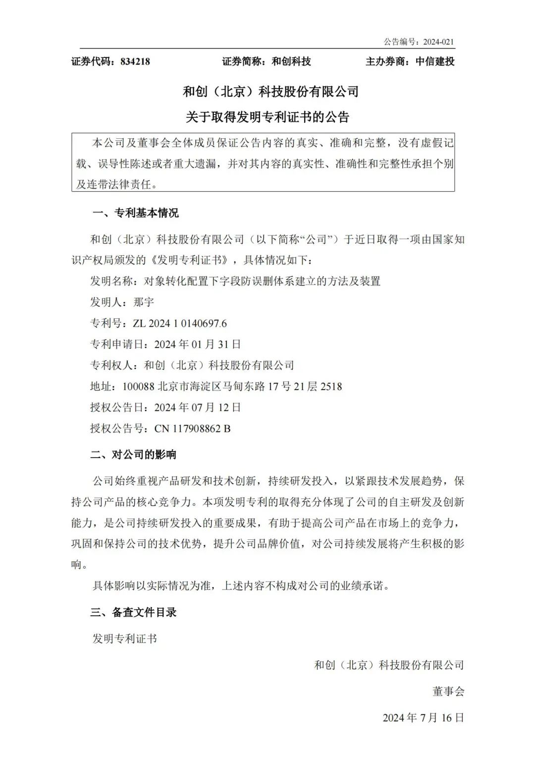 在科技發(fā)展日新月異的今天,每一項(xiàng)新的專利都代表著一次技術(shù)的革新與突破。近日,和創(chuàng)科技再迎一項(xiàng)技術(shù)創(chuàng)新,榮獲最新專利——“對象轉(zhuǎn)化配置下字段防誤刪體系建立的方法及裝置”。