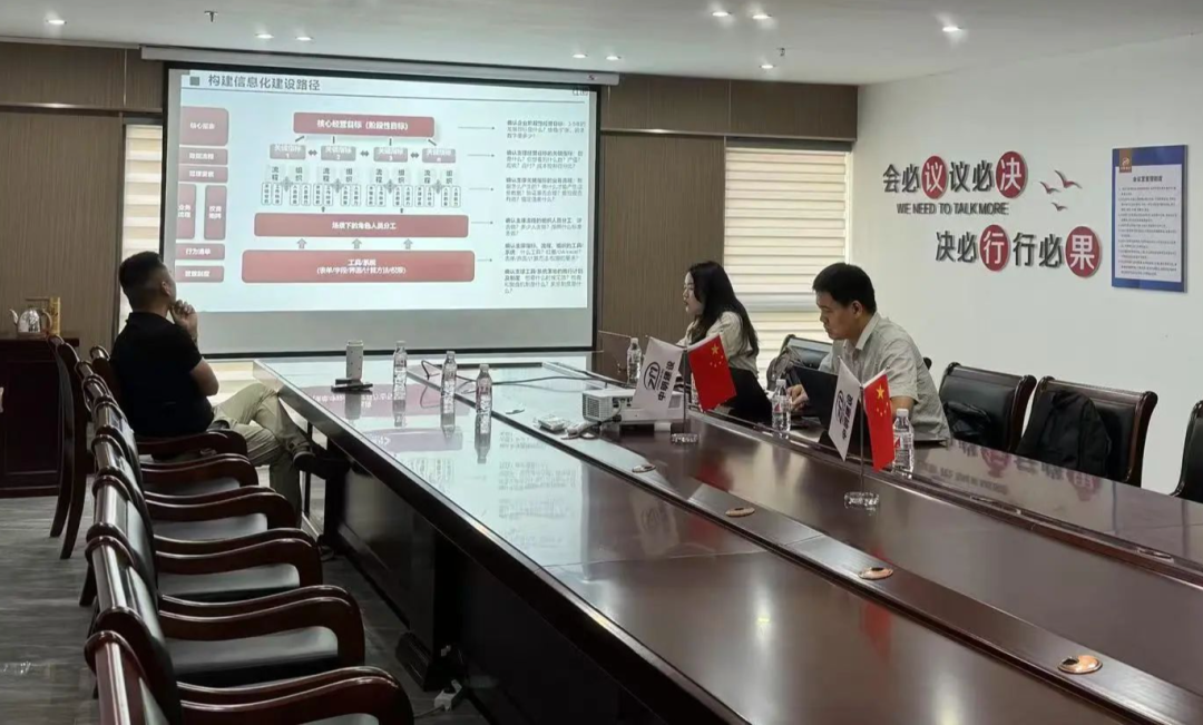 中明建設董事長趙明、財務部栗小芳、工程部王紅巖、投標部張丹峰出席會議,紅圈團隊銷售負責人孫林春、實施負責人蔣慧麗、運營負責人歐陽云祥一同參與。