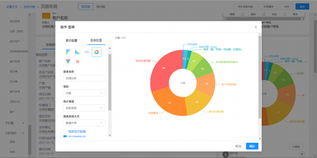 在數據資料的詳情頁面上,可以查看相關對象的報表。實現以當前數據為中心,360度視圖輕松查看分析全貌