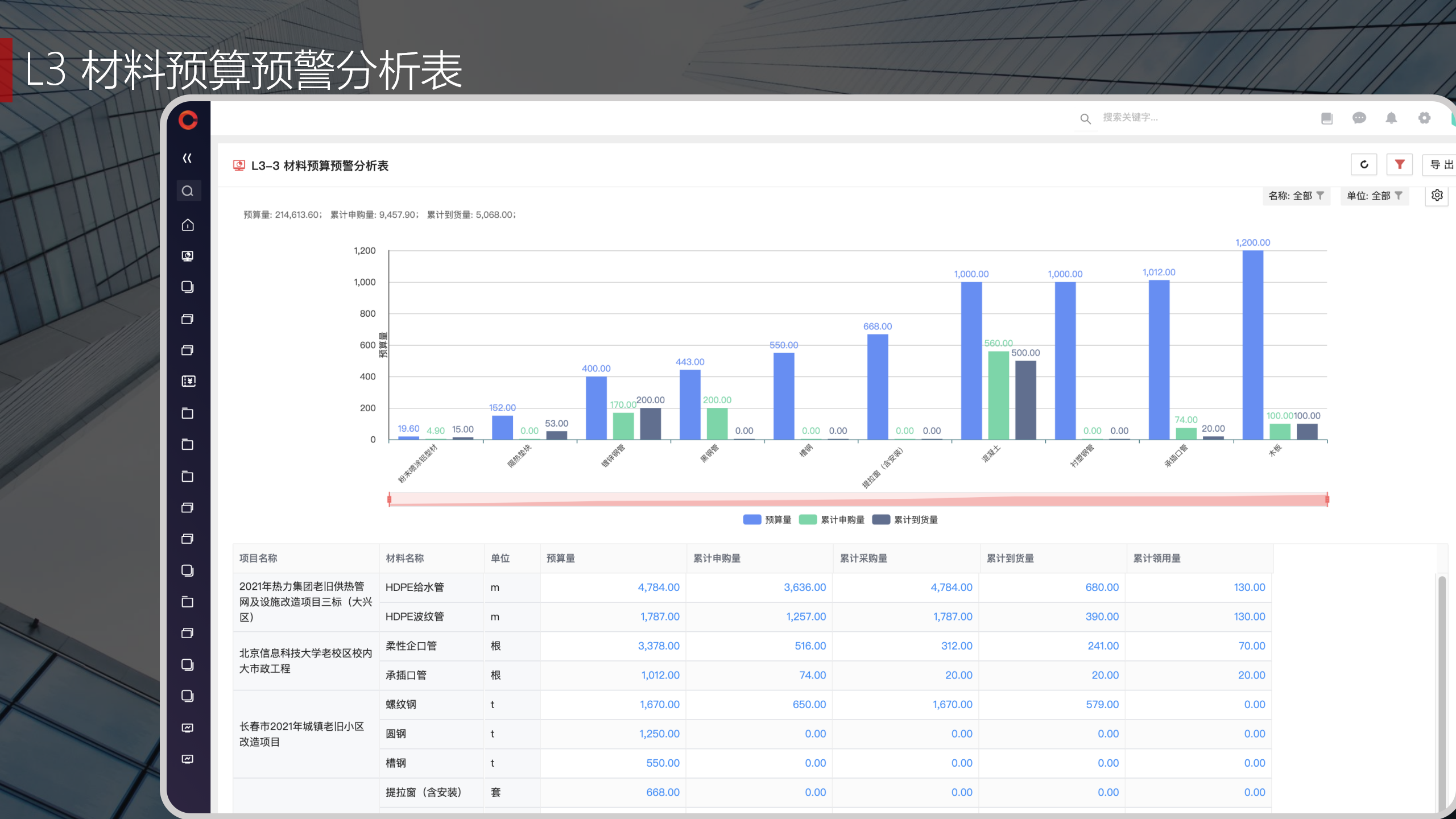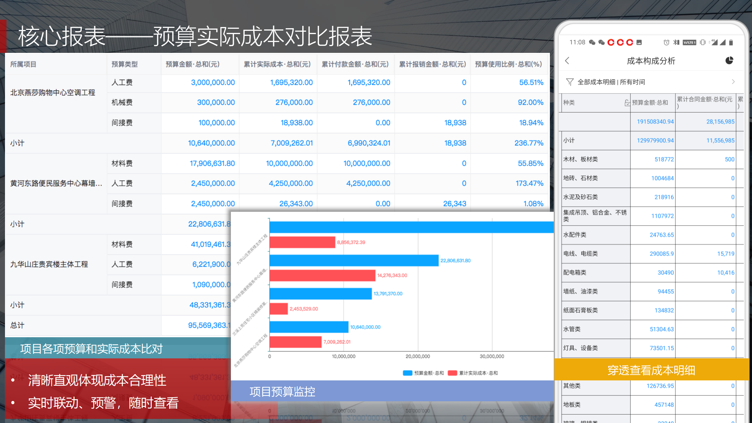 紅圈系統(tǒng)在PaaS平臺(tái)基礎(chǔ)上,根據(jù)工程項(xiàng)目管理的實(shí)際情況,通過(guò)人力資源管理、資金管理、成本管理、物資管理、安全質(zhì)量管理、招投標(biāo)管理、合同管理、勞務(wù)管理等功能模塊,利用報(bào)表引擎實(shí)時(shí)動(dòng)態(tài)抓取項(xiàng)目管理過(guò)程中的相關(guān)數(shù)據(jù),實(shí)時(shí)動(dòng)態(tài)展現(xiàn)公司整體項(xiàng)目運(yùn)營(yíng)情況。當(dāng)某項(xiàng)科目設(shè)定額度一旦超出計(jì)劃指標(biāo)時(shí),系統(tǒng)會(huì)自動(dòng)發(fā)送動(dòng)態(tài)預(yù)警。為公司領(lǐng)導(dǎo)決策實(shí)時(shí)呈現(xiàn)動(dòng)態(tài)智能數(shù)據(jù)分析,讓公司領(lǐng)導(dǎo)實(shí)時(shí)了解工程項(xiàng)目的整體運(yùn)營(yíng)效率及效益是否達(dá)標(biāo),經(jīng)營(yíng)風(fēng)險(xiǎn)是否可控,真正做到項(xiàng)目管理心中有“數(shù)”,滿(mǎn)足公司對(duì)信息化管理的需求,提升公司經(jīng)營(yíng)管理能力,實(shí)現(xiàn)工程項(xiàng)目全過(guò)程管理的降本增效。
