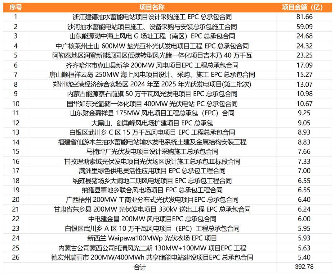 中國電建公布2024年新簽項(xiàng)目,26個(gè)涉及風(fēng)光儲,金額近400億