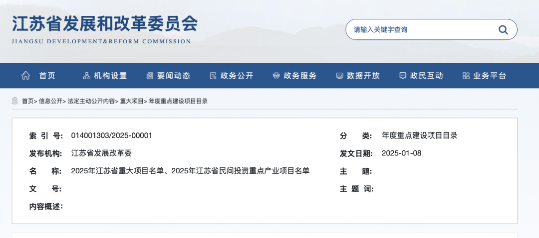 行業熱點?|?500個!2025年江蘇省重大項目名單發布!